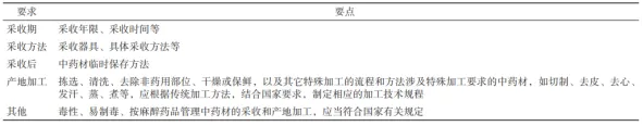 表4 新版中药材GAP关于采收与产地加工技术规程制定的要求