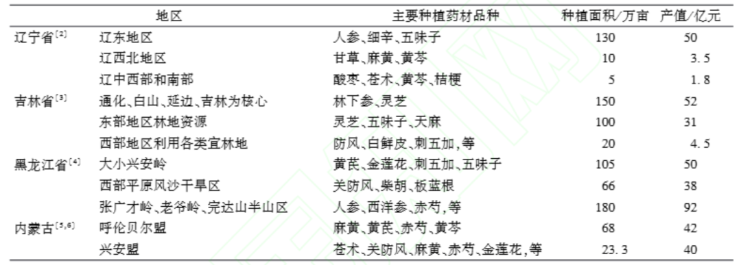 1 东北地区中药材种植现状