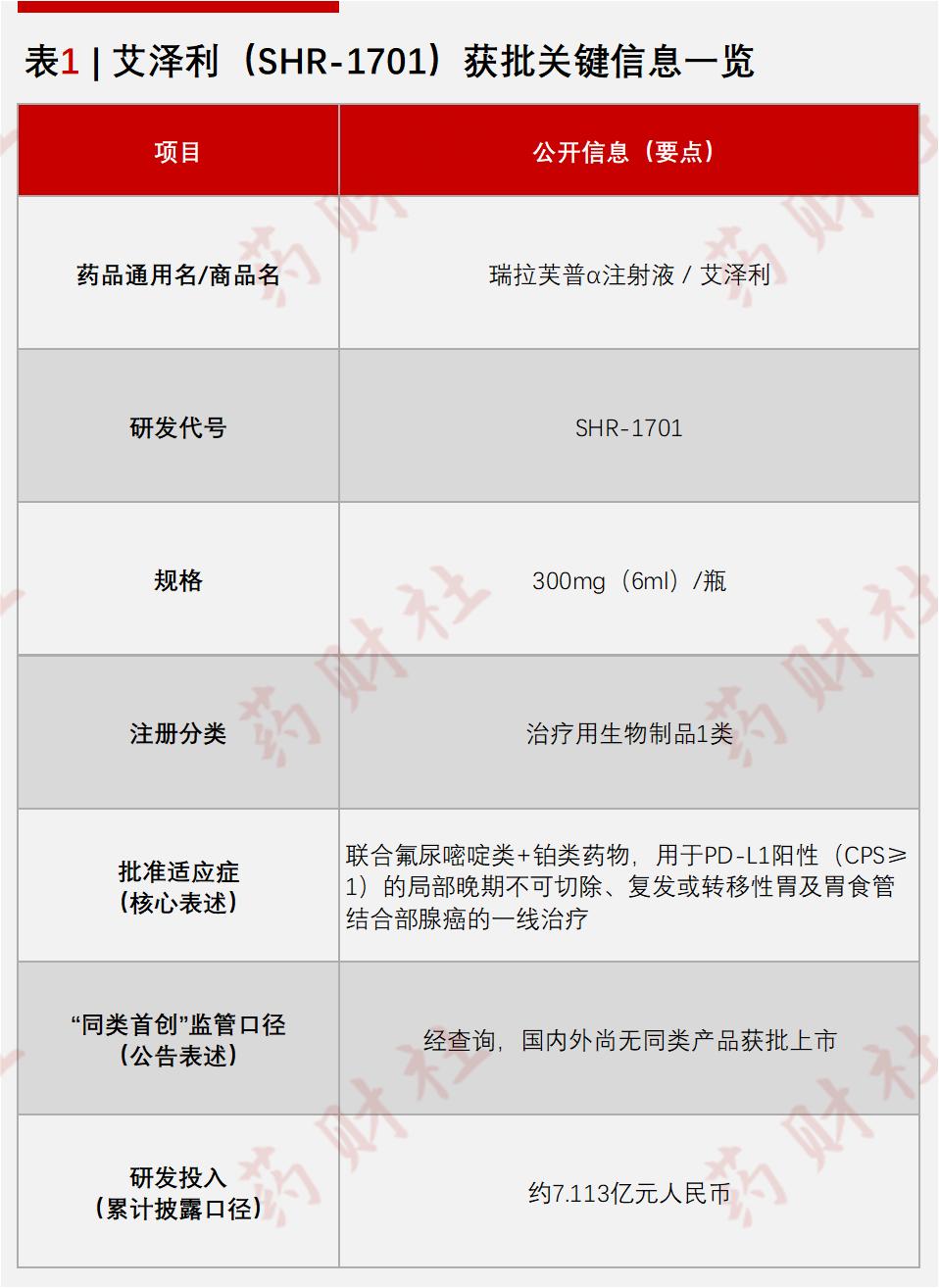 2026年1月7日,恒瑞医药宣布自主研发的瑞拉芙普α注射液(SHR-1701,商品名:艾泽利)在中国获批,用于 PD-L1 阳性(CPS≥1)的局部晚期不可切除、复发或转移性胃及胃食管结合部腺癌一线治疗。