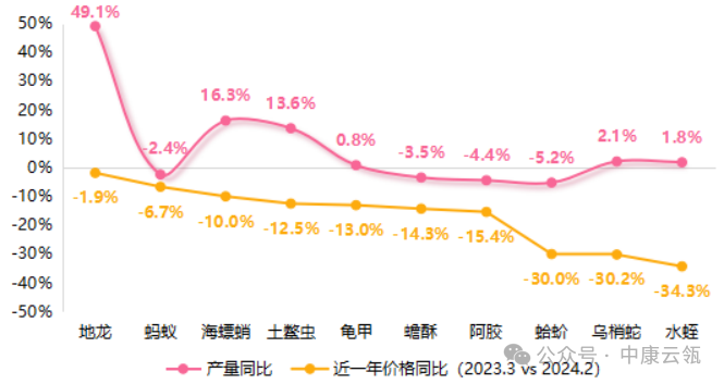 1、价格整体保持上行  中康云瓴中药产业数据系统分析显示,2023年重点监测的28个动物类中药材中,涨价的品种有15个,平均涨幅45.6%,跌价品种10个,平均跌幅16.8%,3个价格持平。